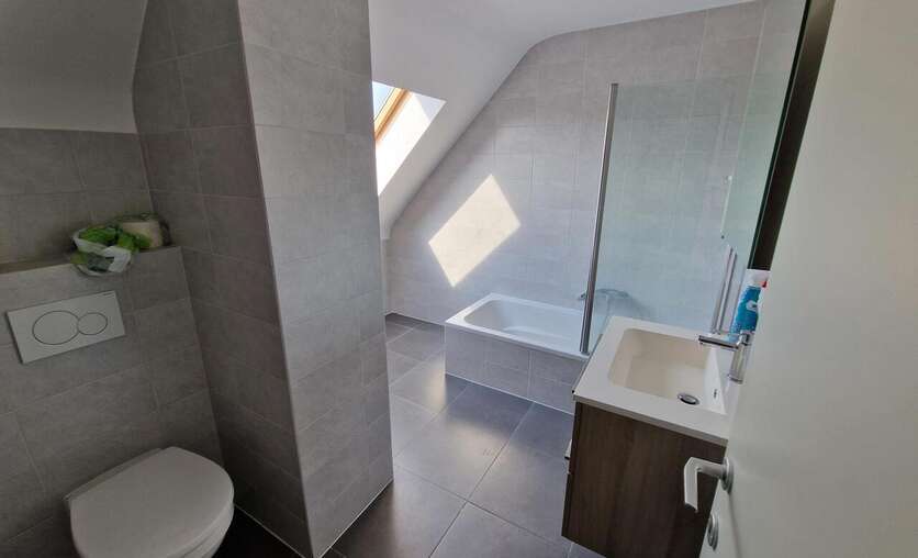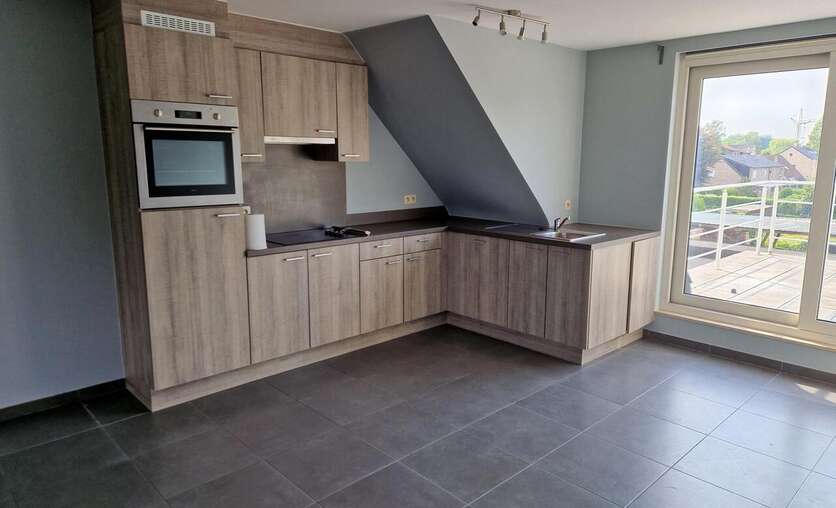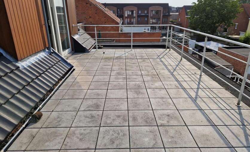 Dit aangenaam verzorgd dakappartement beschikt over de volgende indeling; inkomhal, living voorzien van een schuifraam met toegang naar het ruim terras, een open keuken, twee slaapkamers en een badkamer voorzien van toilet, een ligbad met douchescherm en een lavabo.