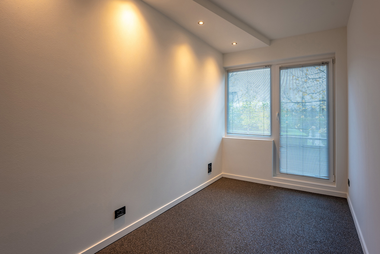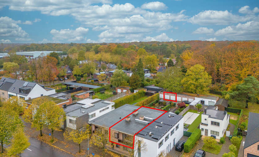Achteraan het gebouw bevinden zich de 2 garages met sectionaalpoorten (inclusief de prijs)..