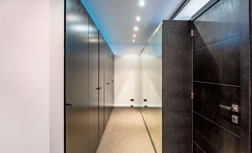 -in de nachthal bevinden zich een reeks ingemaakte dressingkasten.