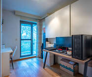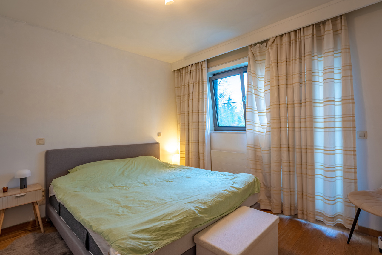 Het terras achteraan (4.3m x 2m) biedt voldoende plaats voor een tafel en 2 stoelen en heeft een mooi aangenaam groen zicht.