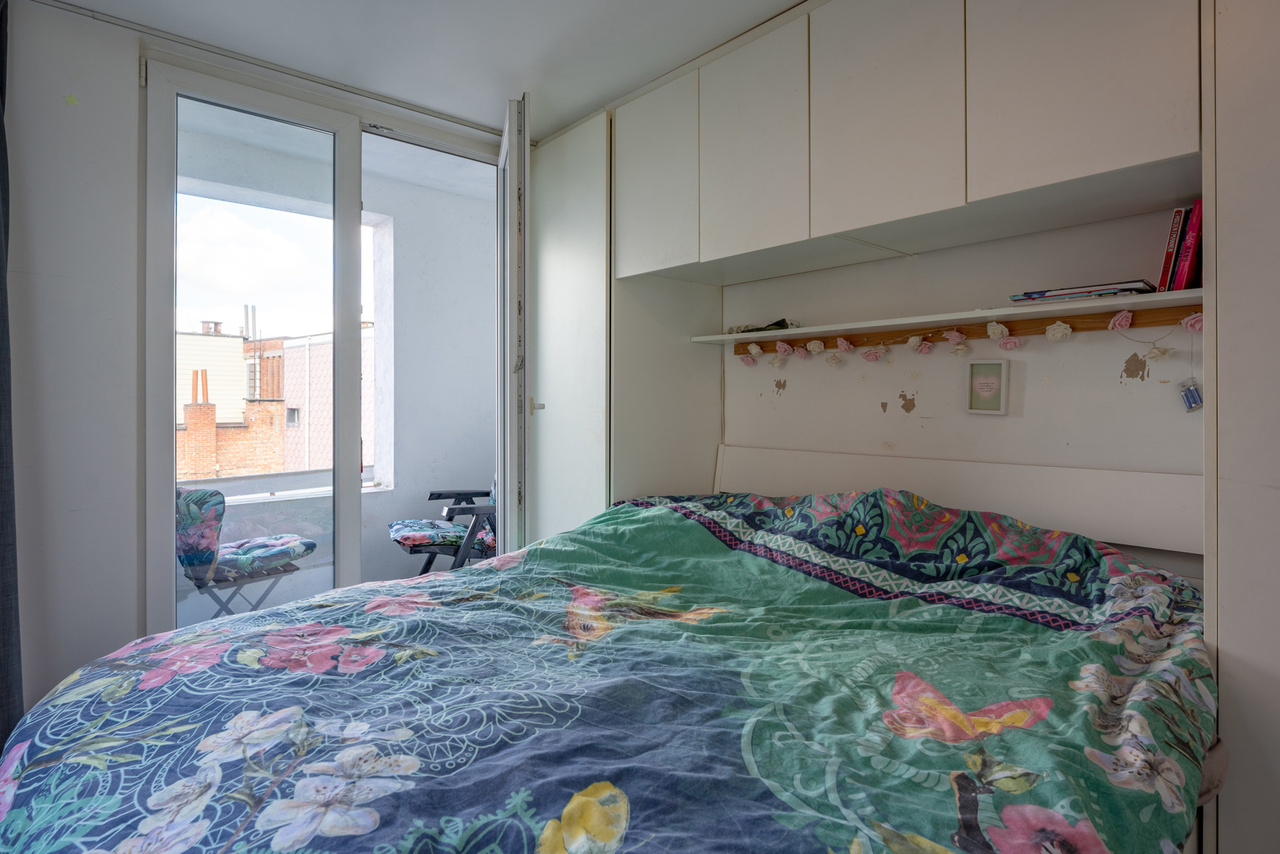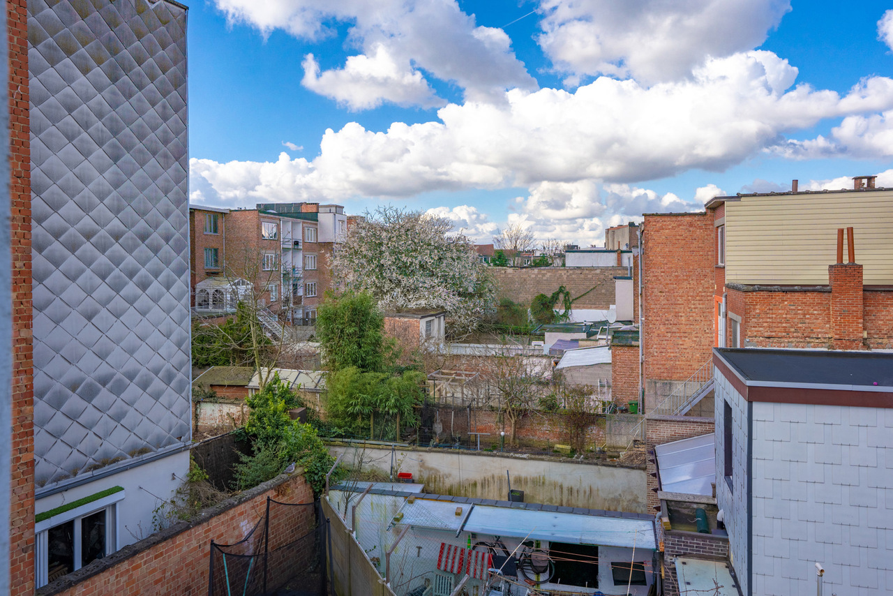 Nabij winkels, openbaar vervoer en diverse invalswegen vinden we dit split-level één slaapkamer appartement. Living met ingemaakte kasten en parket vloer, open keuken voorzien van o.a. vaatwasser en ijskast, badkamer (inloopdouche - toilet & lavabo) en één slaapkamer met overdekt terras. In het gebouw is tevens een ruime kelder voorzien.