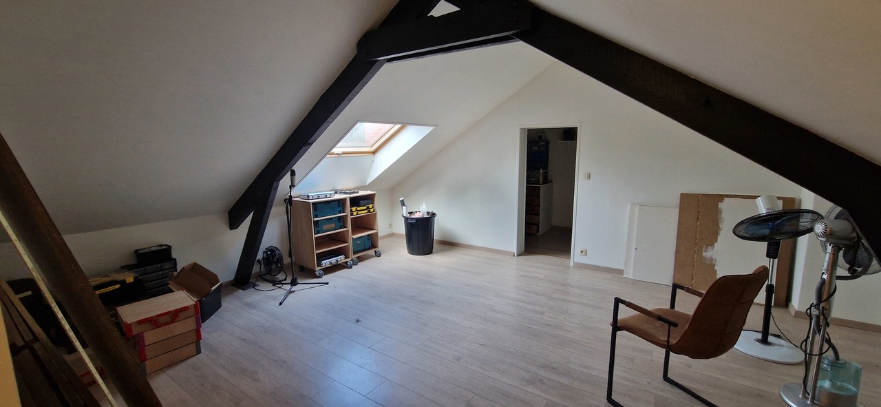 Dit ruim duplex appartement op de eerste verdieping geniet de volgende indeling: inkomhal met apart toilet, zeer ruime living, een keuken, een badkamer en 2 slaapkamers. Via een vaste trap betreden we de zolderverdieping dewelke polyvalent kan worden gebruikt.