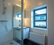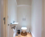 Op de tweede verdieping vinden we een ruime slaapkamer met ensuite badkamer, een tweede slaapkamer, een tweede badkamer en een apart toilet.