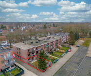 Deze benedenverdieping bevindt zich in een kleinschalig hoekgebouw.