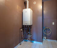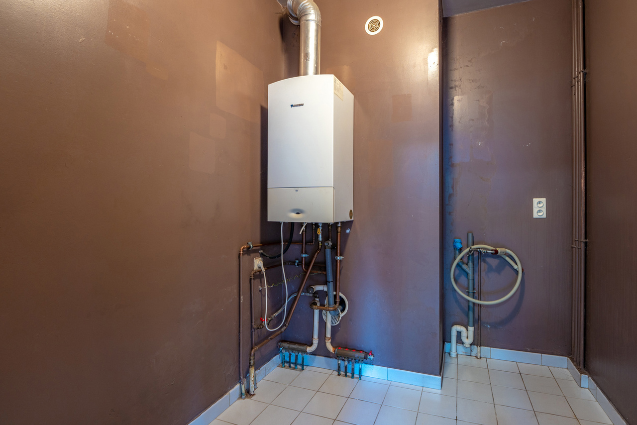 Direct aan de keuken een praktische berging/wasplaats en de CV ketel op gas.