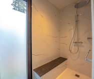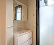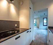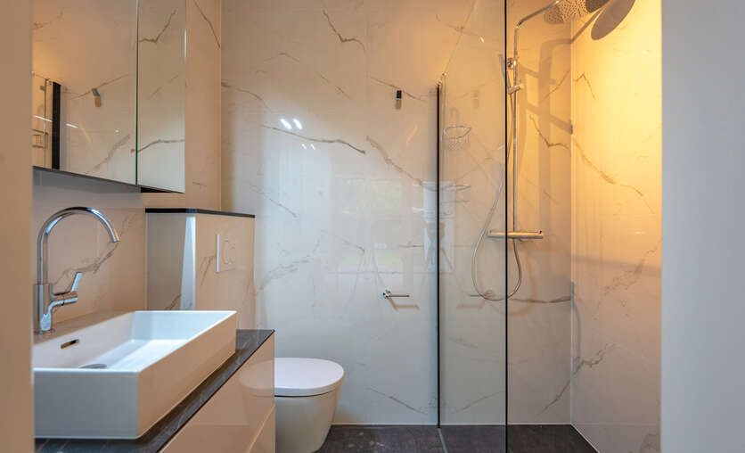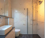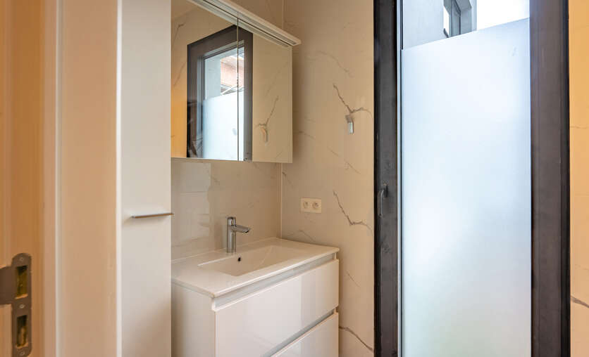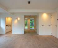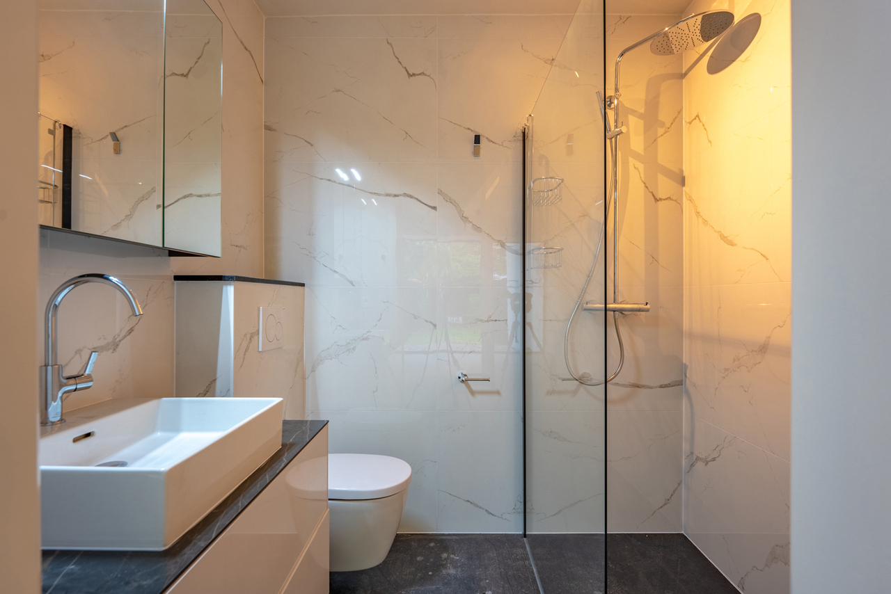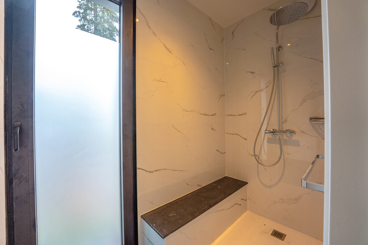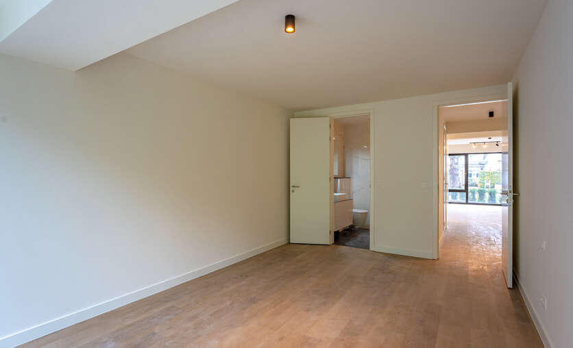 Dit gerenoveerd gelijkvloers appartement op wandelafstand van het dorp geniet de volgende indeling: Royale leefruimte (32m²), twee slaapkamers (18m² - 12 m²) beide voorzien van ensuite douchekamer en een apart gasten toilet.