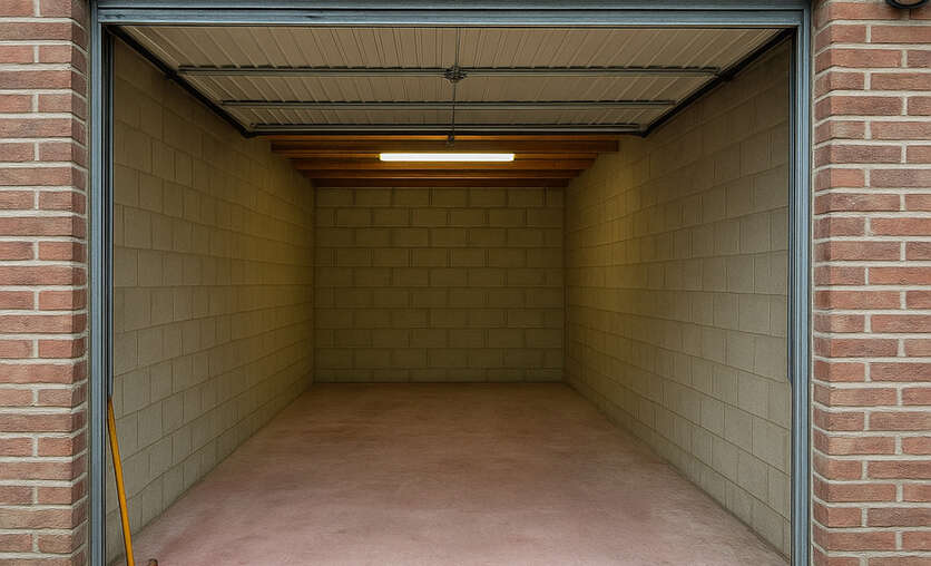 Garagebox, manuele poort, verlichting en stopcontact.