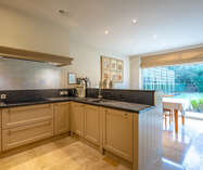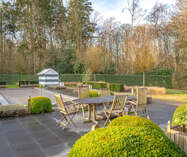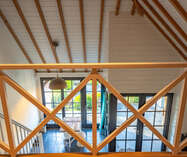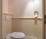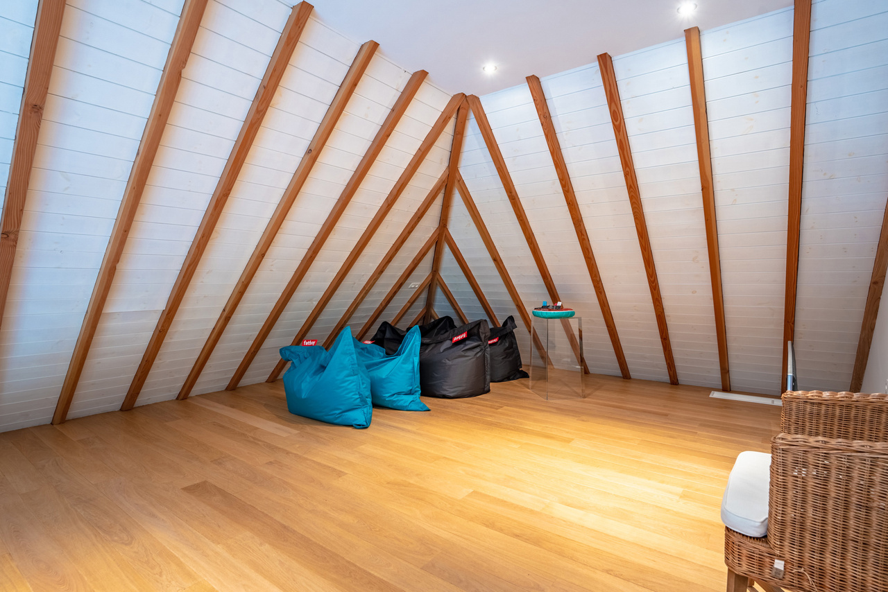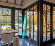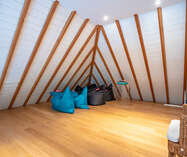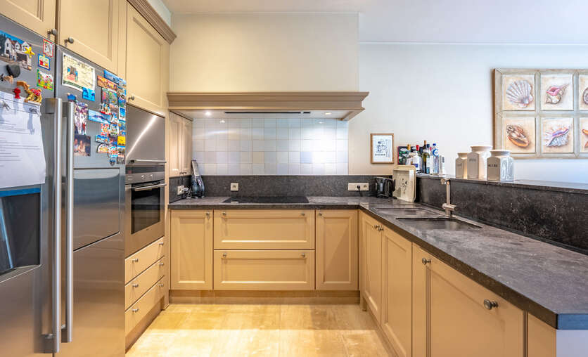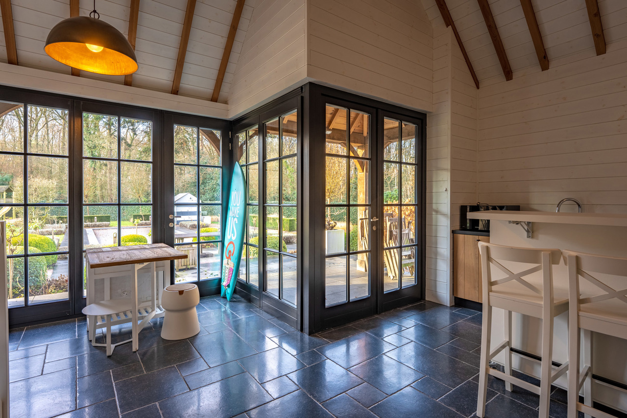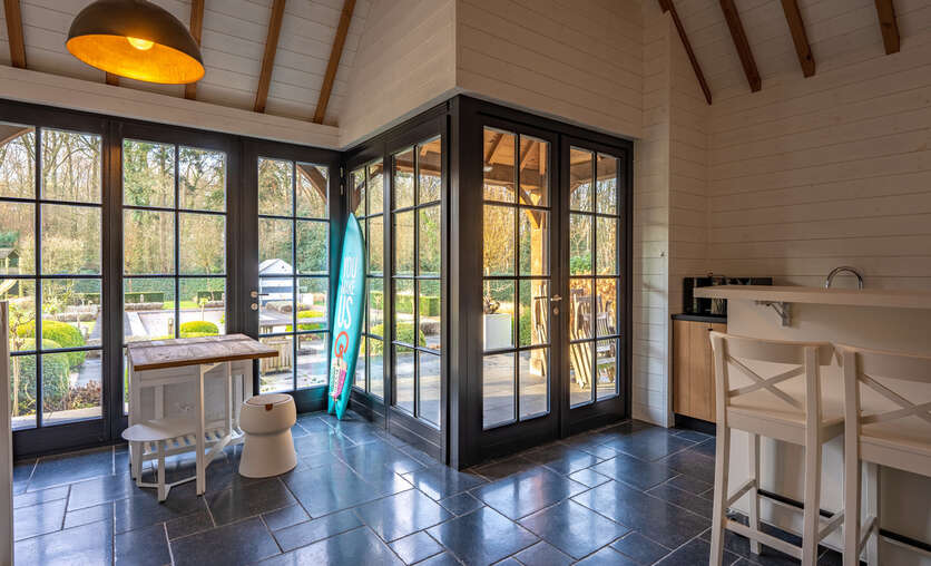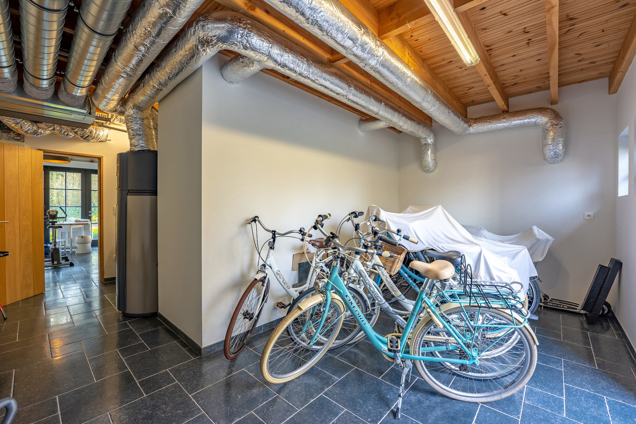 Het bijgebouw werd aangebouwd in 2013 (heden deels fietsenstalling van 22m²) en beschikt over een ruimte met kitchenette en vaste trap naar de gezellige mezzanine, een sanitaire ruimte met apart toilet - aparte inloopdouche.