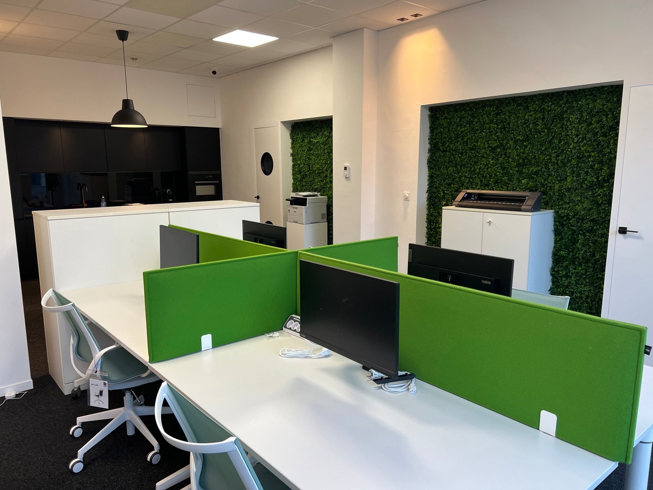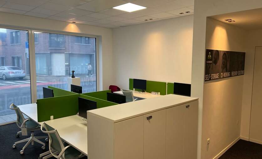 Dit instap- en gebruiksklaar kantoor heeft werkelijk alles voorhanden. Vier burelen, aparte vergaderruimte met TV en een open keuken voorzien van alle comfort.