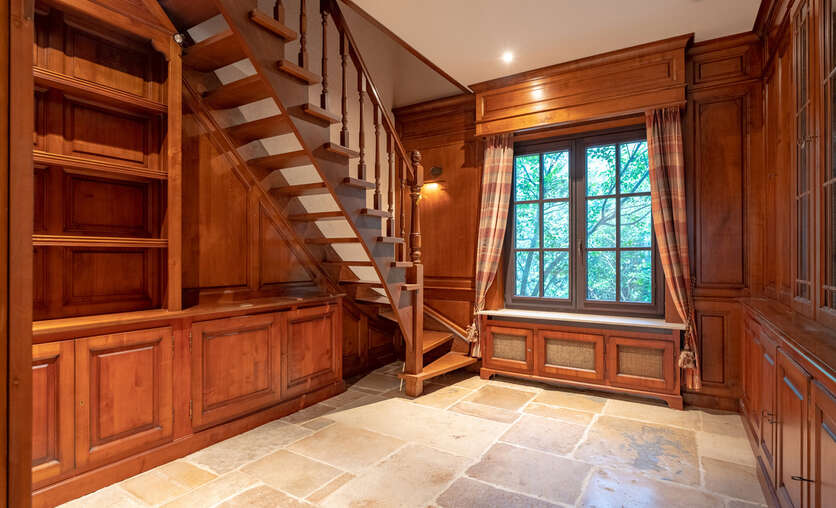 Via een oprijlijn betreedt u het domein met als achterbuur het 149 ha groot Peerdsbos. Midden de oprijlijn bevindt zich de garage voorzien voor 3 wagens (berging en sanitair tevens voorzien).